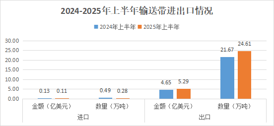 2025年上半年我国输送带进出口简况