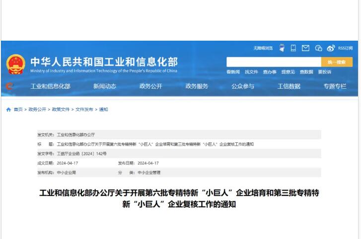 工信部通知 | 第六批专精特新“小巨人”企业申报启动